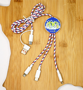 | Multicâble 5 en 1 Flexy en PET recyclé et recyclable L 110 * l 3.8 * h 1 cm - fast charge 20W- entrée USB-C - fourni avec adaptateur USb et 3 sorties USB-C lightning & micro usb. 50ex PU 10.90 €ht + 0.04 /article de DEEE 100ex PU 9.99€ht + 0.04 /article de DEEE |